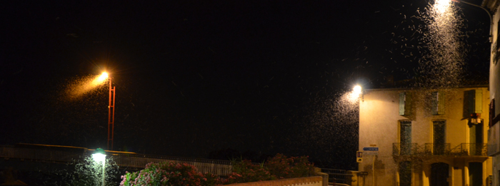 Comme les productions de la terre: légumes, fruits etc… le phénomène estival de l’invasion d’éphémères présente lui aussi cette année un retard d’une quinzaine de jours. Ces insectes volants n’ont fait leur apparition que ce début septembre. Nous remettons à la une le sujet développé en août 2012.