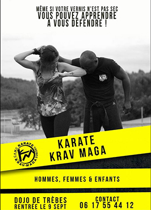 – krav Maga enfants : Mercredi 15h-16h – karaté adultes et enfants : Mercredi 14h -15h et samedi de 10h15-12h