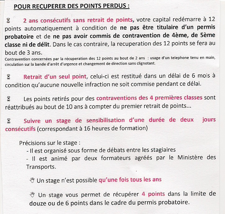 Il existe plusieurs possibilités de récupération de points … en détails cliquez ICI